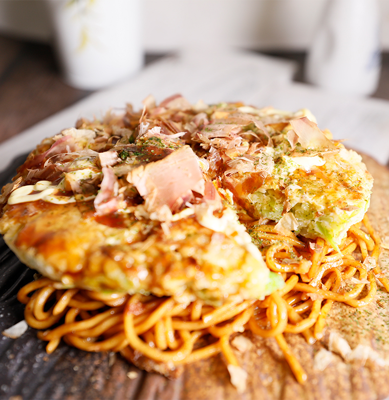 卷心菜、雞蛋、大阪燒預(yù)拌粉、喜好醬汁、豬肉、蛋黃醬、木魚(yú)花、青海苔粉