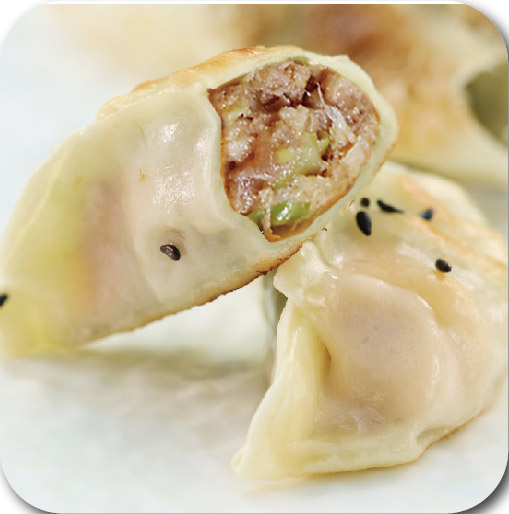 食用方法:①預熱平底鍋后倒入適量食用油,放入煎餃煎至底部微黃;②倒入約餃子高度1/3的水量該好鍋蓋,中火加熱5~6分鐘直到水干;③打開鍋蓋,待蒸汽蒸發(fā)完畢后,擺放盤內即可食用