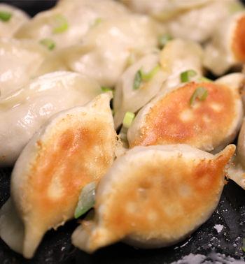 食用方法:①預熱平底鍋后倒入適量食用油,放入煎餃煎至底部微黃;②倒入約餃子高度1/3的水量該好鍋蓋,中火加熱5~6分鐘直到水干;③打開鍋蓋,待蒸汽蒸發(fā)完畢后,擺放盤內(nèi)即可食用